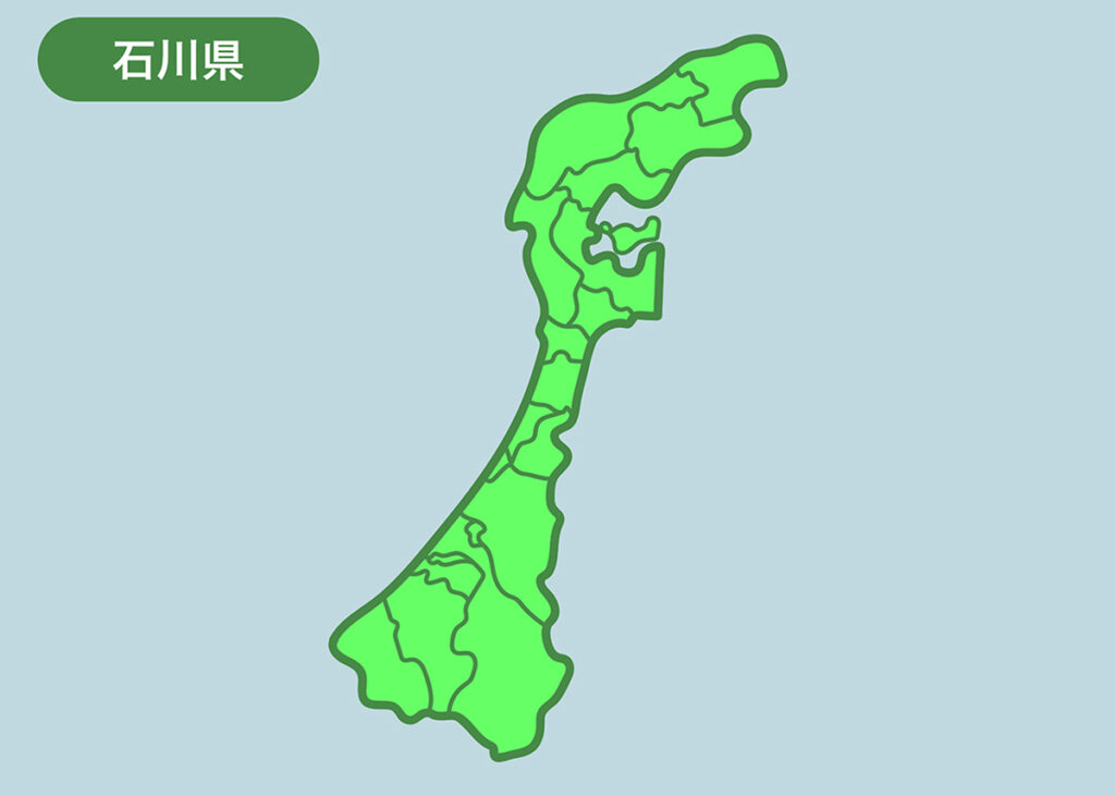 石川県は南北に長い形をしています。大きく分けて、下半分が加賀地方で上半分が能登地方。