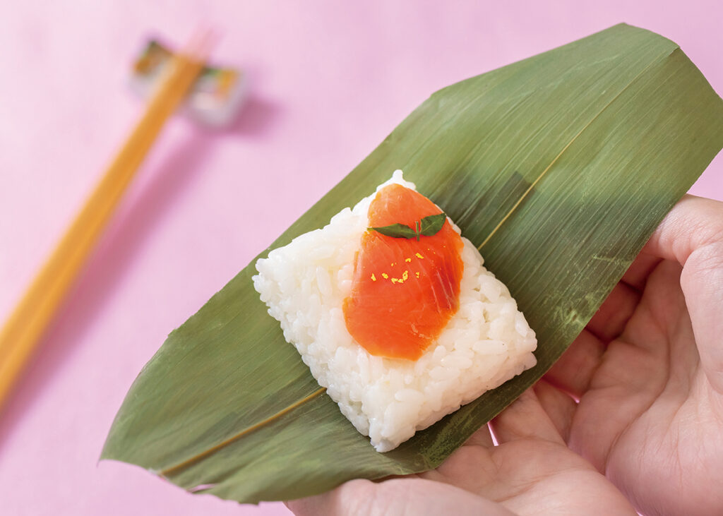 近海で水揚げされる鮭と鯛を使用。笹の香りが酢飯にほのかに移った上品な味わいです。