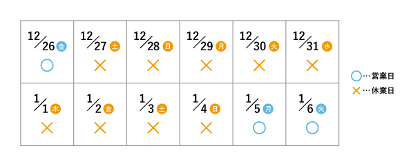 年末年始休業期間のご案内