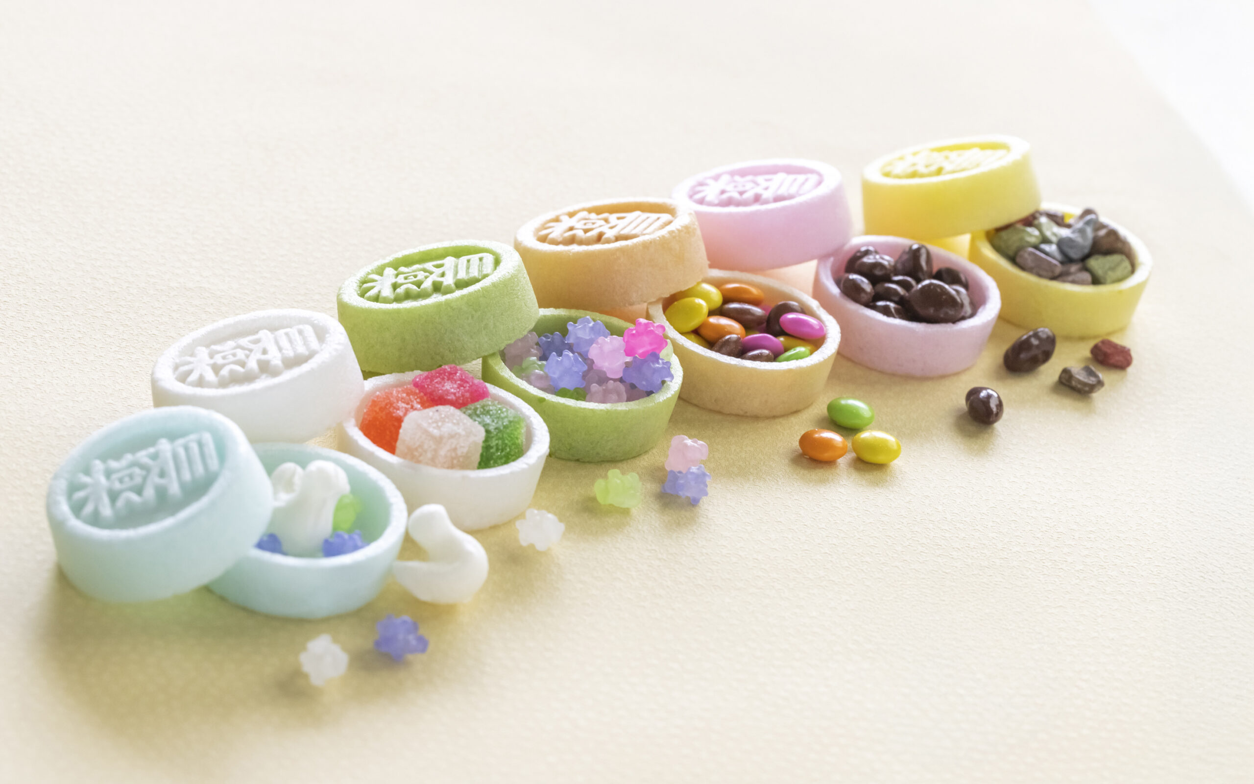 彩り豊かな最中の小箱の蓋を開けると、可愛らしい一口サイズの和洋菓子が並びます。金平糖のやさしい甘さから懐かしいチョコレートまで楽しめる詰め合わせ。季節ごとに内容が変わり、贈り物や自分へのご褒美にもおすすめです。見た目も味わいも楽しく、箱を開ける時間まで思い出になる一箱です。