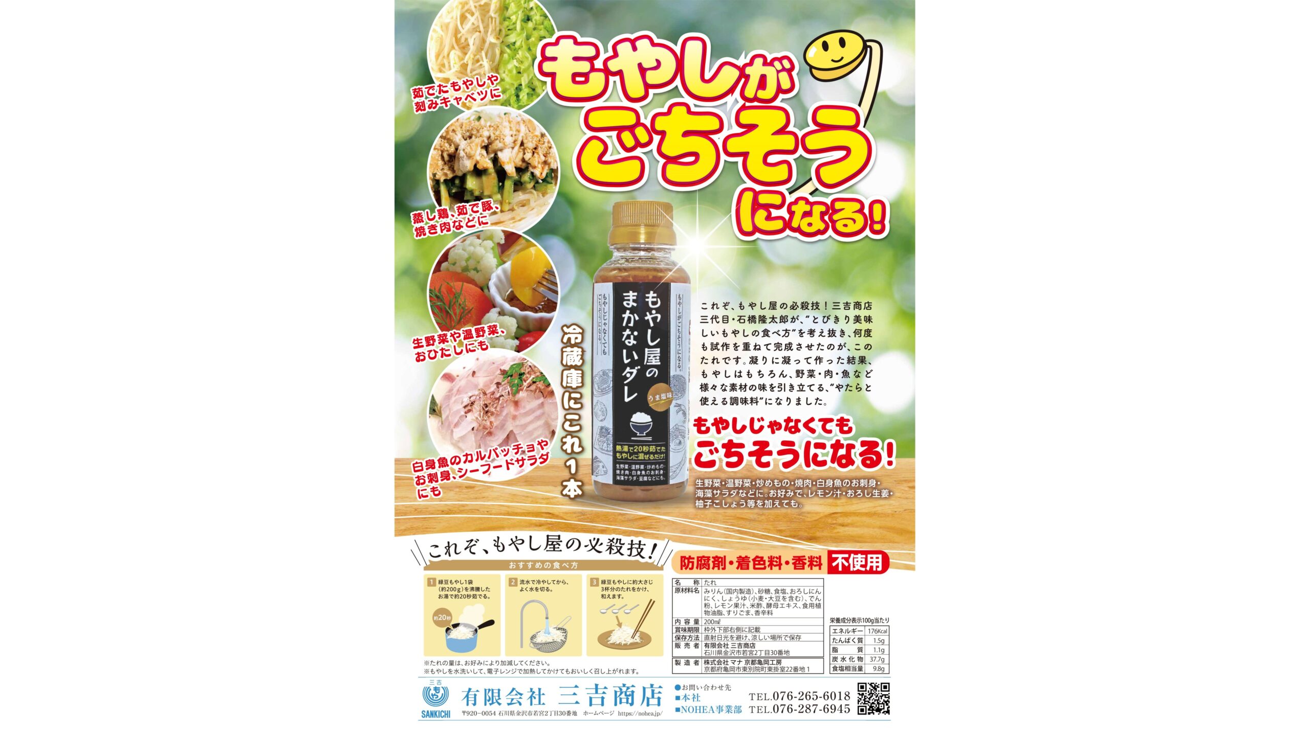 老舗もやし屋の現場で生まれた「もやし屋のまかないダレ」。毎日もやしを知り尽くす職人たちが考えた、シャキッとした食感と旨みを引き立てる味わいです。炒め物はもちろん、肉や野菜にも使える万能調味料として、家庭の定番におすすめです。